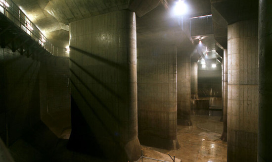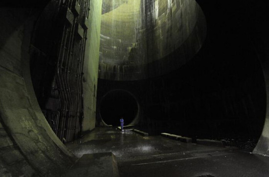 日本东京,世界上最大的地下排水系统——“首都圈外围排水系统”。它建造于1992年至2006年之间,共耗资30亿美元,堪称世界上最先进的下水道排水系统。全长6.4公里,排水系统包括5个高65米、宽32米的巨型竖井,竖井之间由内径约10米的管道连接起来。前4个竖井里导入的洪水通过下水道流入最后一个竖井,集中到由59根高18米、重500吨的大柱子撑起的巨大蓄水池中。日本人将这个长177米、宽78米的蓄水池称作“地下神庙”。“地下神庙”曾经在多部电影和戏剧中出现过。