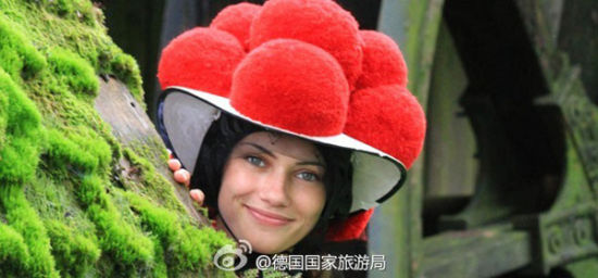 黑森林地区女性的大绒球帽(图片来源:德国国家旅游局官方微博)