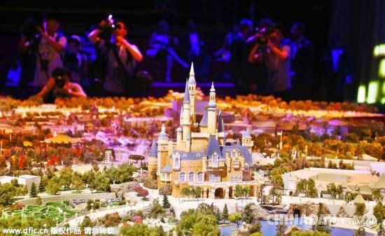 2015年7月15日,上海迪士尼度假区将于明年开幕,昨天终于首度揭开神秘面纱,六大主题园区在园区“沙盘”上初露真容。首个海盗主题园区、全球最长迪士尼花车巡游路线、全球首发最刺激游乐项目,据了解,上海迪士尼乐园将拥有很多全球迪士尼乐园“之最”。(图片来源:东方IC)