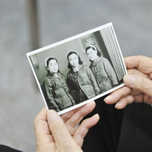 原爆当天,竹岗智佐子约了两个好朋友出去玩。此为三人合影,另两人至今生死不知。陈秋旭 摄