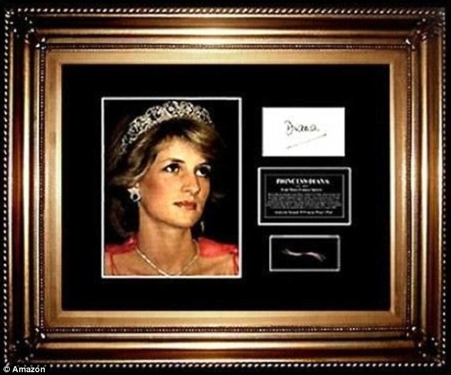 Described as just a 'few strands' of Diana's hair, the American seller has put the memorabilia in a frame along with a photograph and a facsimile signature.