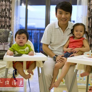 上海的蒋(音)先生与美国代孕母亲为他们夫妇孕育的三个子女