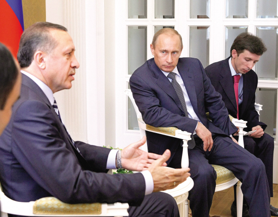 ■土耳其总统埃尔多安(左)未能如愿与普京在巴黎联合国气候变化大会期间会面。(资料图)