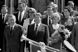 里根上世纪60年代投身政坛后,南希宣布息影,并迅速转变角色成为里根的“最佳顾问”,全力支持丈夫的政治事业。1966年里根当选加州州长后,南希开始以州长夫人的角色参加社会活动。