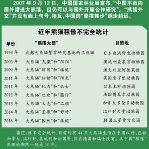 新中国成立后,熊猫去处反映了当时的中国外交政策:在向前苏联一边倒的上世纪50年代,中国向前苏联赠送了两只熊猫; 到了中美关系解冻的上世纪70年代,熊猫开始在西方走红,美国、法国、英国、西德、西班牙等国相继获赠大熊猫。