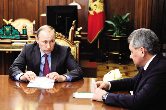 ■14日,俄罗斯总统普京在克里姆林宫与俄国防部长绍伊古会谈。新华社发