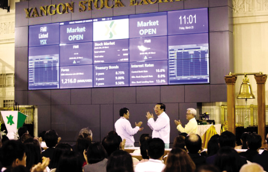 当天上午10时,缅甸第一投资公司股票开盘价为每股2.6万缅元(约合140元人民币),开市后上涨20%,达到涨停标准。由于仰交所未能完全实现电子化交易,投资者只能在获准的券商营业部手工填写单据下单。据悉,4月将有另一只股票开始交易。