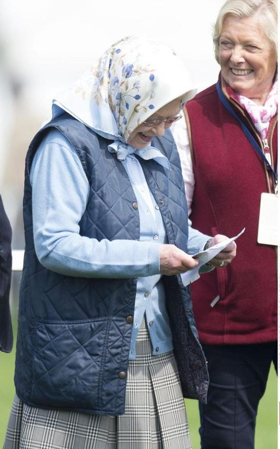 看到带着碎花头巾,穿着棉马甲的女王哈哈大笑,马展的组织者和驯马师都笑得前仰后合……