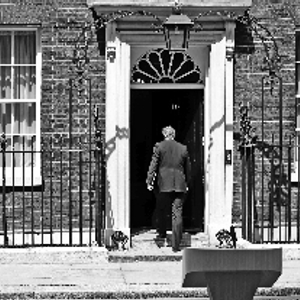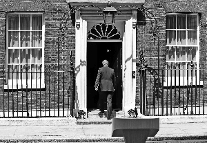 6月21日,英国首相卡梅伦在伦敦唐宁街10号首相府前发表演讲后离开。新华社发