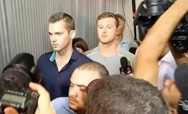 △两名游泳运动员被巴西警方拦下
