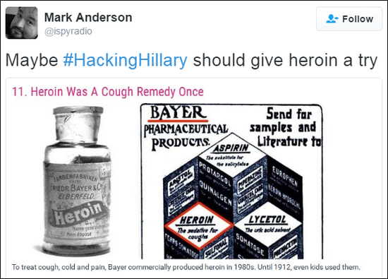 或许,应该给希拉里来一发海洛因(海洛因曾被用于治疗咳嗽)。