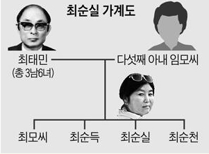 崔顺德是崔太敏与第五任妻子所生的四个女儿中的二女儿。报道引述消息人士称,崔顺德负责在幕后发号施令,崔顺实则根据指示行动。