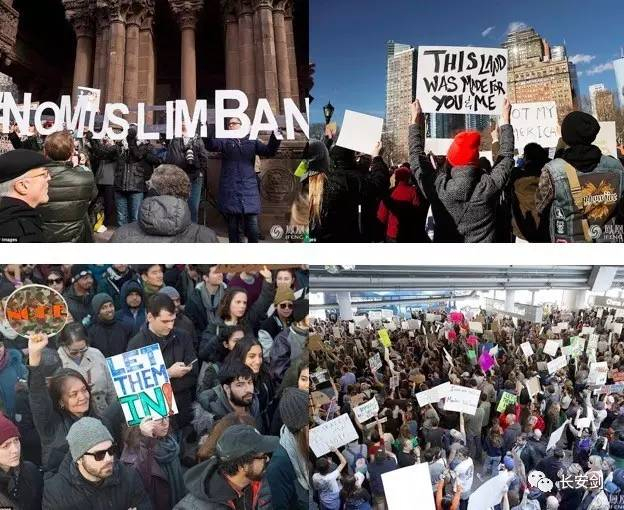 美政府的移民政策立刻引起民众的强烈反对,全美各地游行的声势一浪高过一浪,民众举着“不要穆斯林禁令”、“这片土地曾属于你我”、“让他们进来”的标语对政府的新政表示抗议。