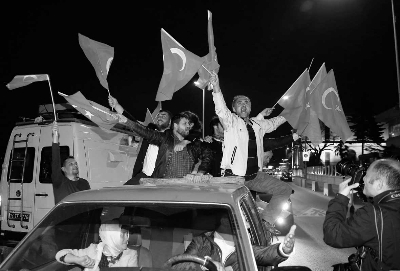 当地时间16日,在初步计票结果发表后,支持修宪的民众在土耳其伊斯坦布尔欢庆公投通过 图/东方IC |
