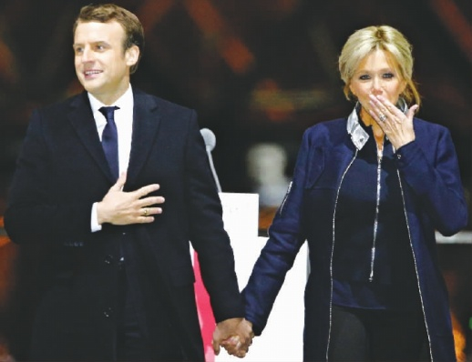 5月7日︐马克龙和妻子在集会上庆祝当选︒新华社 图