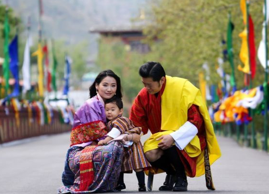 不丹国王楚旺克和王后佩玛与小王子吉格梅。