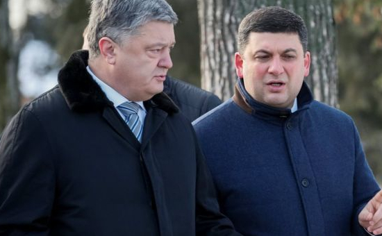 乌克兰总统波罗申科和总理是弗拉基米尔·格罗伊斯曼(右)。