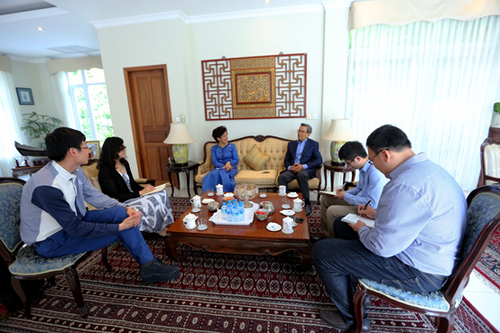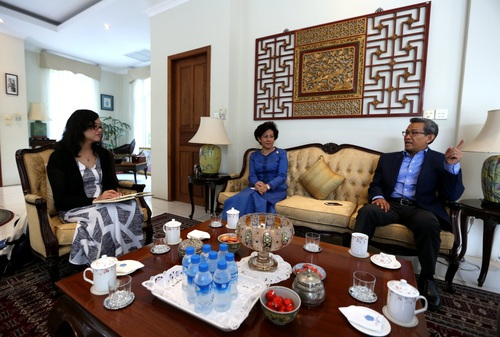 人民日报“一带一路”采访组,与阿伦公主夫妇在官邸座谈。