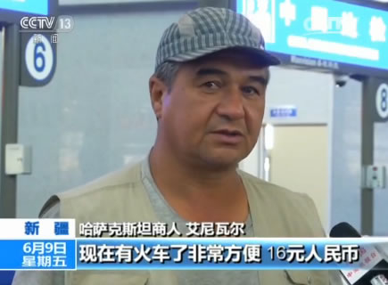 哈萨克斯坦商人 艾尼瓦尔:我以前是坐汽车需要100块人民币,现在有火车了非常方便,16元人民币就可以从霍尔果斯到阿腾科里,速度也很快。