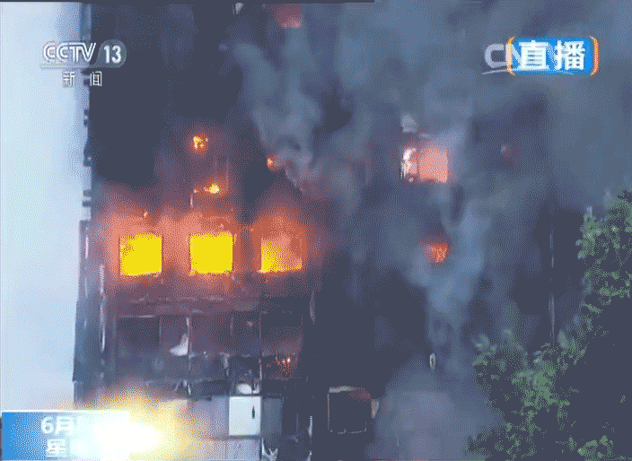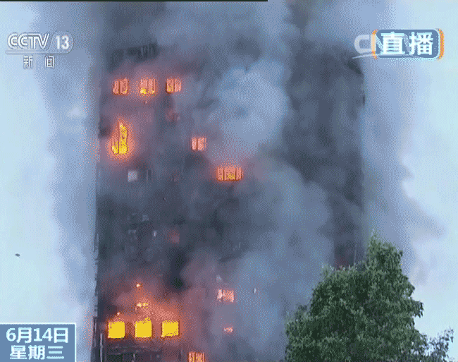 据英国广播公司赶到现场的记者报道称,整栋建筑都被火焰照亮,建筑物可能会倒塌,内部还不时传出一些爆炸声和玻璃裂碎的声音,有不少人从大楼的窗户里往外跳出。