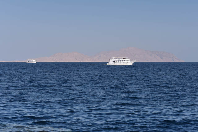 2月11日,在埃及沙姆沙伊赫海岸拍摄的蒂朗岛。(新华社记者孟涛摄)
