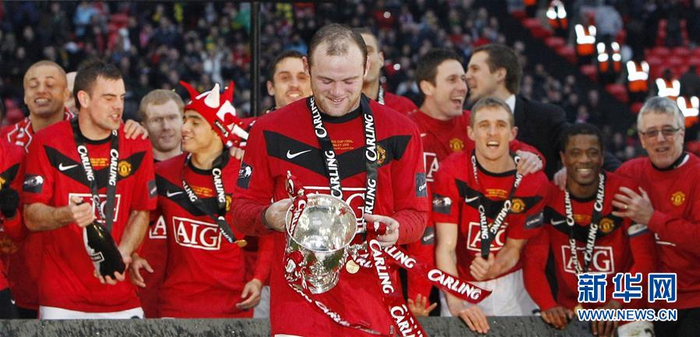 图为2010年2月28日,曼彻斯特联队球员鲁尼(中)与队友在颁奖仪式上。当日,在伦敦举行的英格兰联赛杯决赛中,曼彻斯特联队以2比1战胜阿斯顿维拉队,夺得冠军。新华社发
