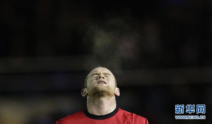 图为2012年3月8日,曼联队球员鲁尼在比赛中。当日,在欧罗巴联赛八分之一决赛首回合比赛中,英格兰曼彻斯特联队主场以2比3不敌西班牙毕尔巴鄂竞技队。新华社发