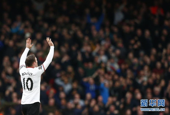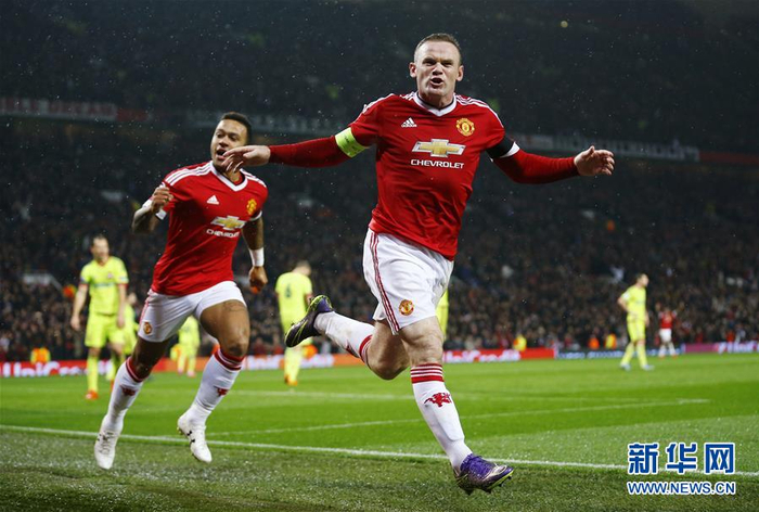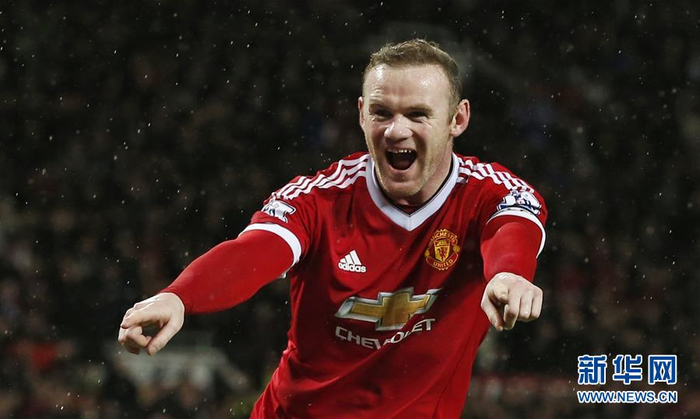图为2016年1月2日,曼联队球员鲁尼庆祝进球。当日,在2015-2016赛季英超联赛第20轮比赛中,曼联队主场以2比1战胜斯旺西队。新华社发