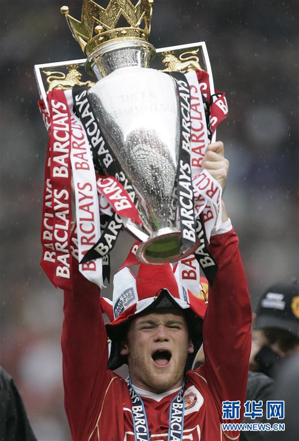 图为2007年5月13日,曼彻斯特联队球员鲁尼在加冕仪式上高举奖杯庆祝。当日,曼彻斯特联队在英超第38轮比赛中以0比1不敌西汉姆联队。比赛后,曼彻斯特联队在主场举行了本赛季的冠军加冕仪式。新华社发
