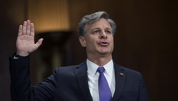 2017年7月12日,美国华盛顿,新提名美国FBI局长克里斯托弗·雷出席参议院司法委员会举行的提名听证会。图片来源:东方IC