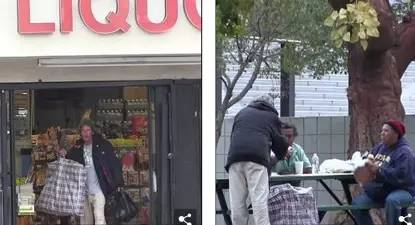 流浪汉获资助后买食物分给其他人?真相:系摆拍