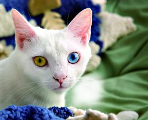 眼睛颜色不一样、脸部左右毛色不一样的猫咪