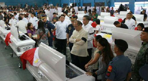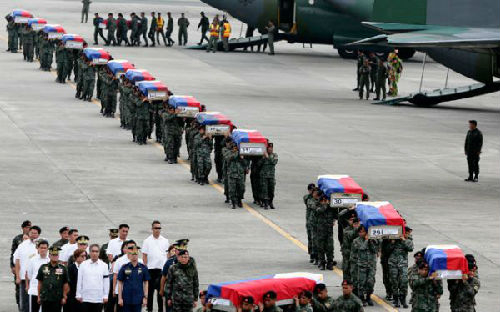 44名特警遇害后,他们的遗体被运回首都马尼拉。