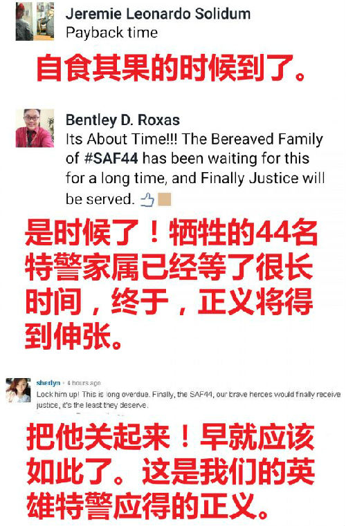 这则新闻立即引爆了菲律宾的网络舆论,不少网民留言表示大快人心: