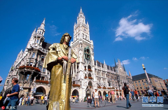 玛利亚广场坐落在慕尼黑老城的中心,历史上是城镇广场,形成于1158年。广场得名于建于1638年玛利亚圆柱,上面的青铜雕像描绘了小天使斩杀狮子(战争)、蜥蜴(瘟疫)、龙(饥饿)、蛇(无信)这4个妖怪的场景,顶端则是金色的圣母玛利亚雕像,以纪念摆脱瑞典统治。新旧市政厅均座落在广场旁。(图片来源: agefotostock/东方IC)