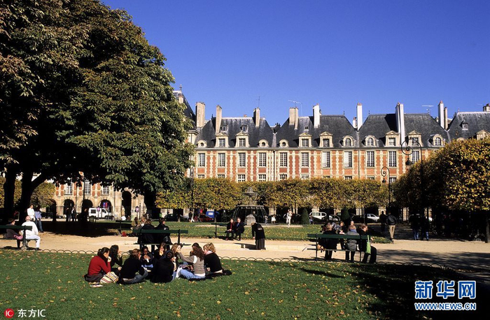 孚日广场是巴黎最古老的广场,最早被称为皇家广场,是教科书一样标准的四方形广场,由亨利四世兴建于1605-1612年,39栋红砖建筑首尾连接而成。孚日广场的建立远在巴黎改造以前,是目前巴黎现存的最早的完整设计的公共空间,临街骑楼的设计在巴黎极为罕有。在长廊下的咖啡馆里小坐,品味一杯咖啡,感觉瞬间就回到了那个遥远而壮丽的法兰西帝国。(图片来源: 东方IC)
