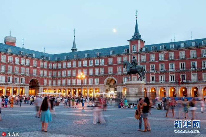 主广场是马德里的中心广场,距离太阳门不远。周围环绕着三层高的住宅楼,共有237个面临广场的阳台和9个入口,气势宏伟。主广场的控制建筑是皇家糕点厂,行使市政权,外墙装饰着17世纪的精美壁画。 (图片来源: agefotostock/东方IC)
