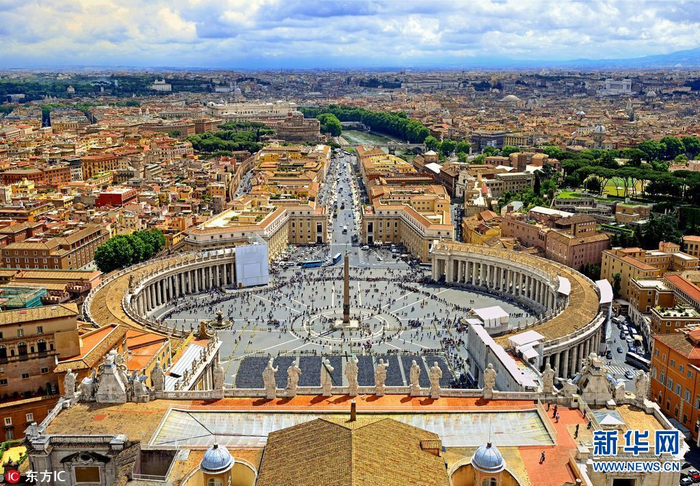 建筑大师贝尔尼尼的杰作,世界上最大的公共空间之一,巴洛克风格的建筑布局充分体现了他的设计风格,令人称奇。从高处看,广场就像一个钥匙孔,由四排多立克式圆柱形成的两个半圆形的柱廊组成一个巨大的椭圆,广场中间有古埃及的方尖碑。 (图片来源: huber/东方IC)