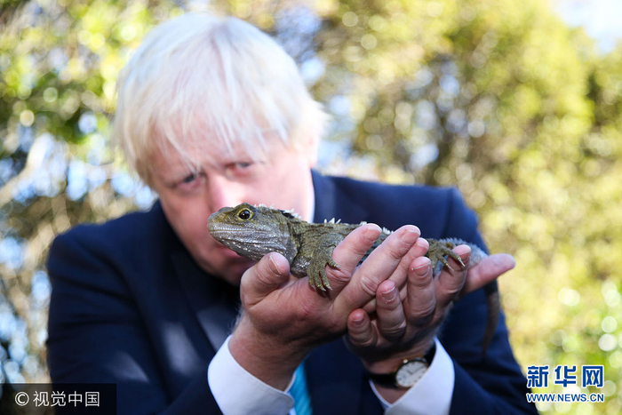 英国外交大臣鲍里斯·约翰逊访问新西兰自然保护区玩性大发,手捧着一只蜥蜴仔细端详起来,这对于整日忙于政务的鲍里斯来说可谓是一次难得的体验。(图片来源:视觉中国)