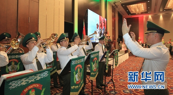 白俄罗斯军乐团在建军节招待会上表演。新华网发(马祖列维奇摄)