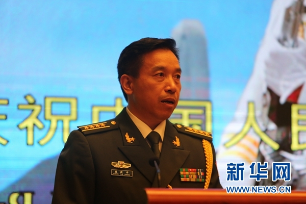 白俄罗斯国防部长拉夫科夫在建军节招待会上致辞。新华网记者魏忠杰摄