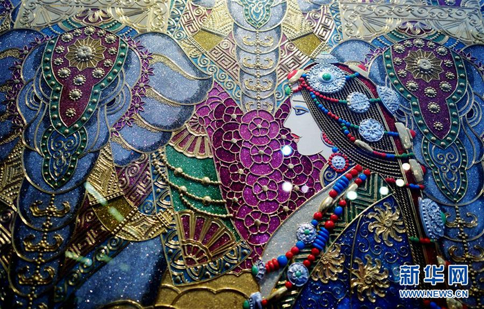 这是厦门蔡氏漆线雕代表作品、大型壁画《万象更新》的局部(8月4日摄)。