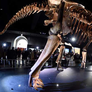 2016年1月14日资料照片显示:美国纽约自然历史博物馆展出的世界最大恐龙。(新华/法新)