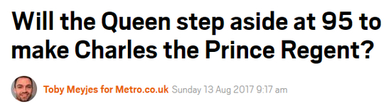 《地铁报》:女王95岁时退休,让查尔斯当摄政王?
