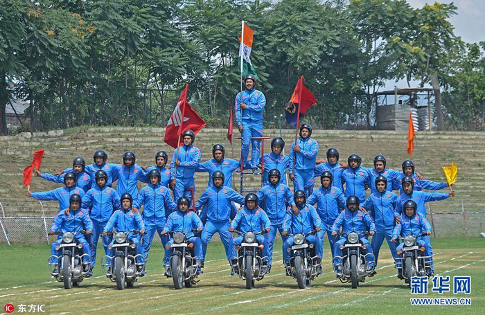 印度庆祝独立日 警察表演钻火圈叠罗汉(组图)