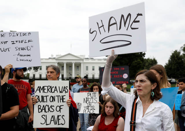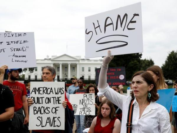 在夏洛茨维尔骚乱发生两天后,美国总统特朗普发表声明,明确谴责种族主义、白人至上主义和新纳粹分子。