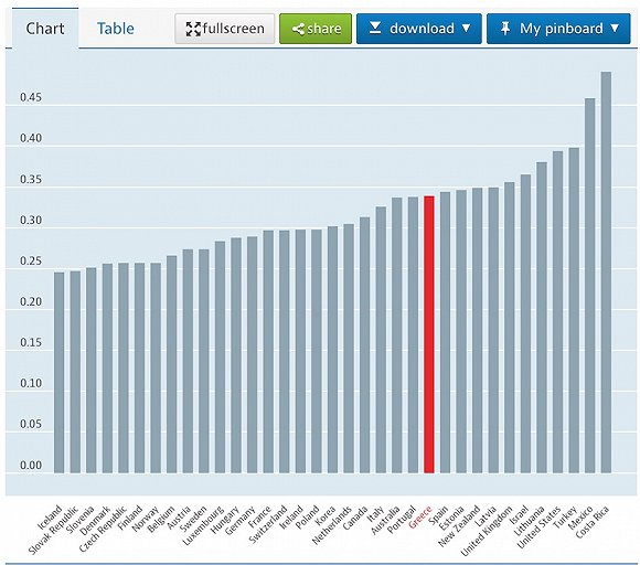 2014年再分配后的收入数据显示,OECD的34个成员国中,美国、英国、以色列等发达国家位于前六个不平等程度最严重国家之列。