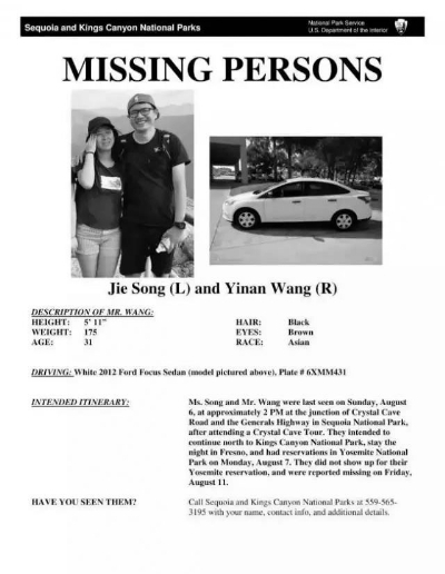 ▲美国国家公园管理局公布的王一楠夫妇寻人启事 |