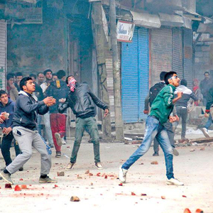 印度抗议民众在克什米尔地区扔石块 砸伤印议员