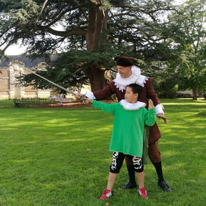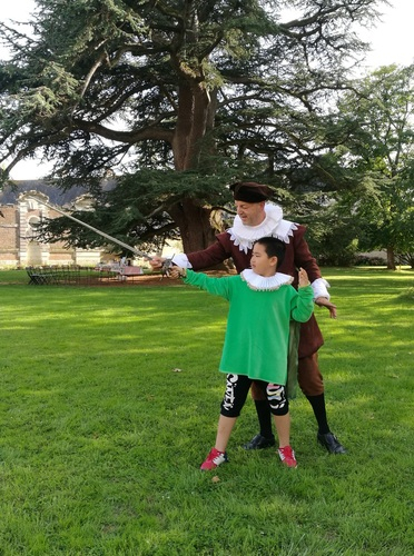 一个孩子在法国卢瓦尔河谷塞纳古堡体验法国文化。王永摄